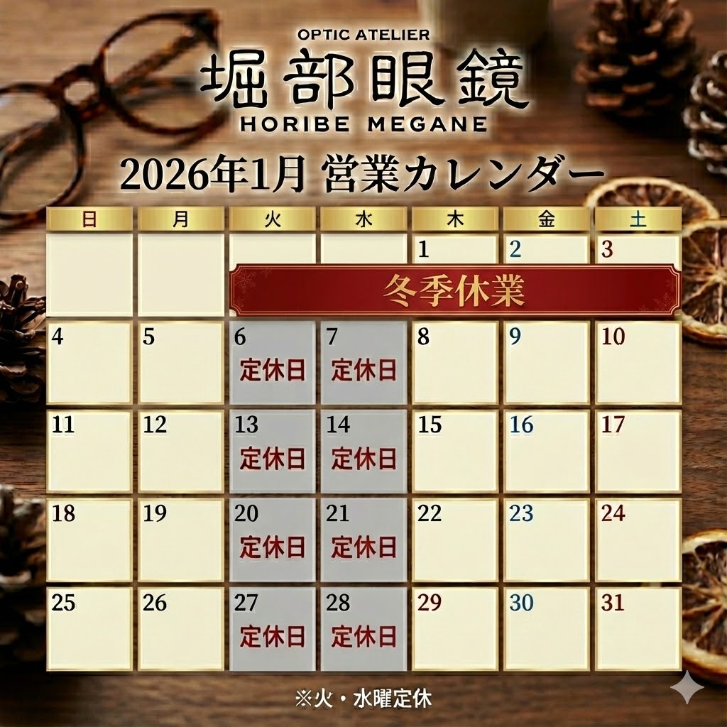 こんにちは!堀部眼鏡です。 街もすっかりクリスマスムードですね。 今年もたくさんのお客様に支えられ、充実した一年となりました。 本当にありがとうございます。 さ… -